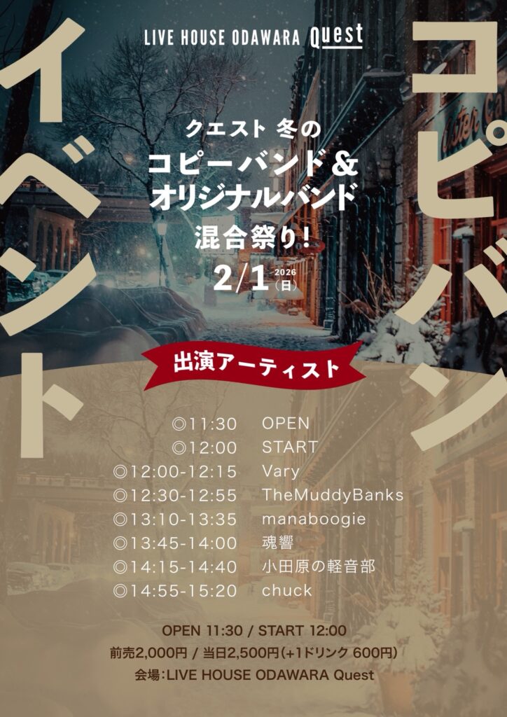 2026/2/1 (sun.) 『 クエスト 冬のコピーバンド&オリジナルバンド 混合祭り!