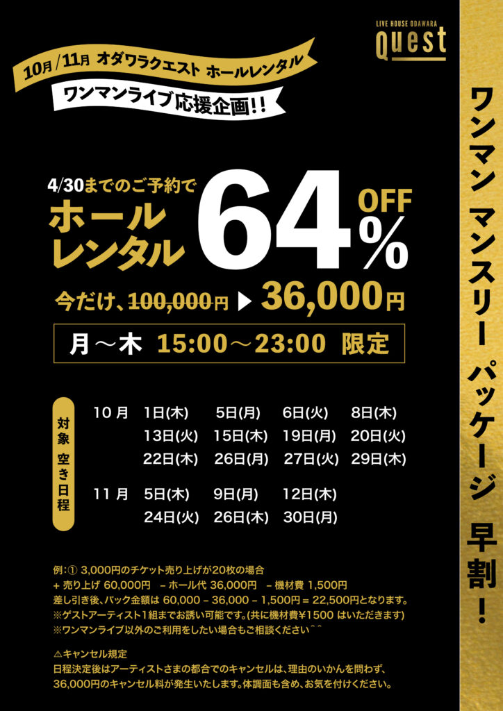 【 10月/11月 オダワラクエスト ホールレンタル 】